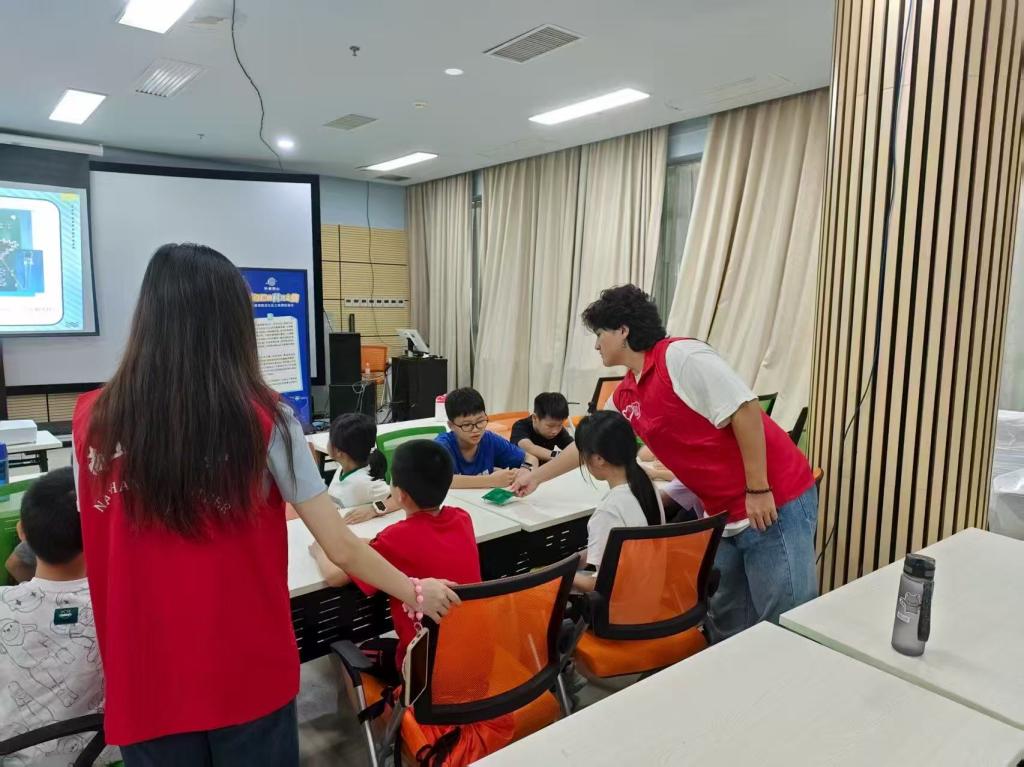 夏令营中,突击队队员与社区教师协同策划了一系列特色课程,让知识在互动中自然流淌:大学城社区马鲁娟老师带来的“炫彩五角星”科技课上,队员们化身助教,引导孩子们动手操作实验装置,在光影变幻中探索科学原理,课堂上不时响起惊叹与欢笑;微观生态瓶DIY活动里,孩子们在队员的指导下分层铺土、栽种绿植、注入清水,亲手打造迷你生态系统,在实践中理解“生物与环境”的共生关系;唐俊峰队员主讲的AI科普课则通过生动PPT、趣味短视频与简易模型演示,将抽象的人工智能技术转化为可触可感的知识,让孩子们轻松读懂科技奥秘。