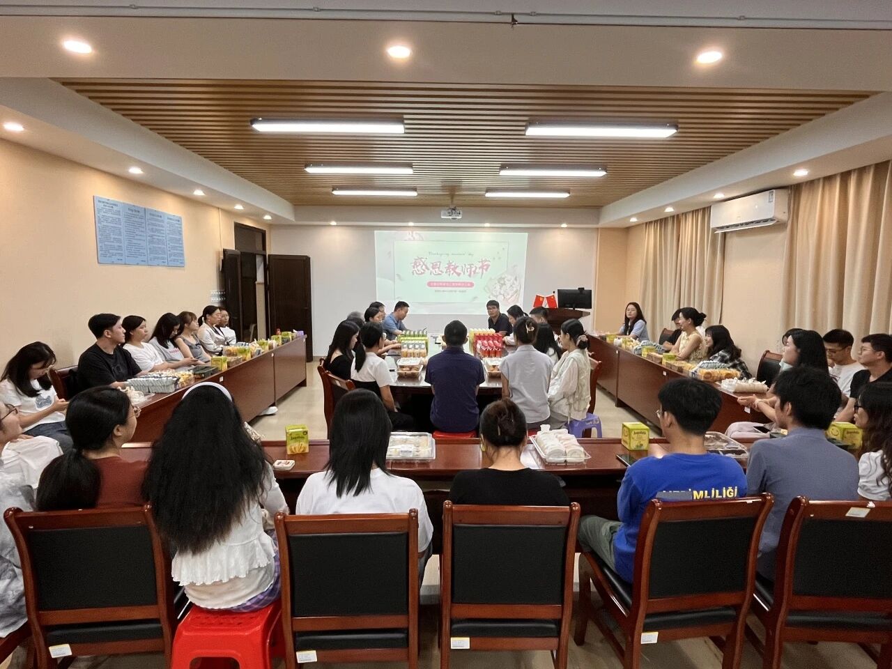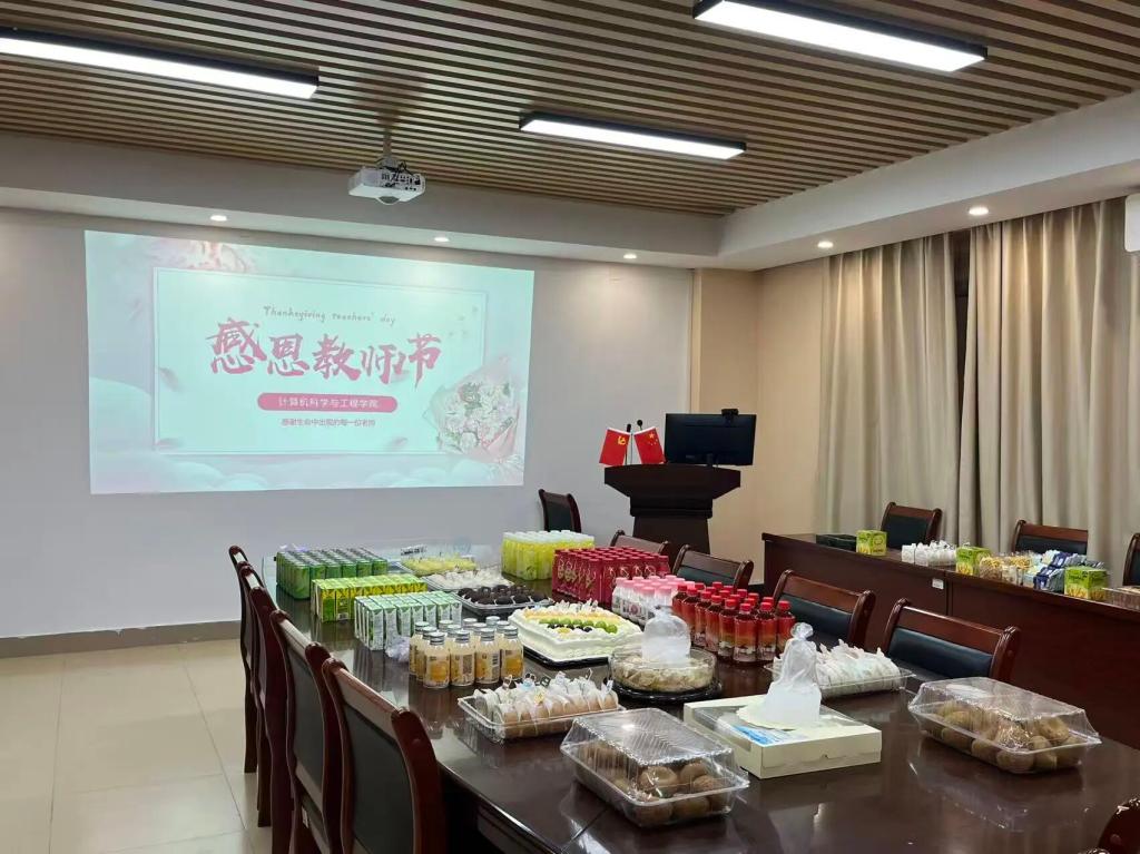 活动当天,两校区会场均精心布置,洋溢着浓厚的节日氛围。广州校区的茶话活动设在信息楼303会议室,惠州校区则于行政楼203会议室开展,公司为每位到场教师精心准备了精致的下午茶点与饮品,让老师们在忙碌的教学科研工作之余,得以放松身心、畅叙交流。现场气氛轻松融洽,老师们围绕教学创新、团队建设、员工培养等话题坦诚分享,在交流中凝聚育人共识,在畅谈中感受公司温暖。
