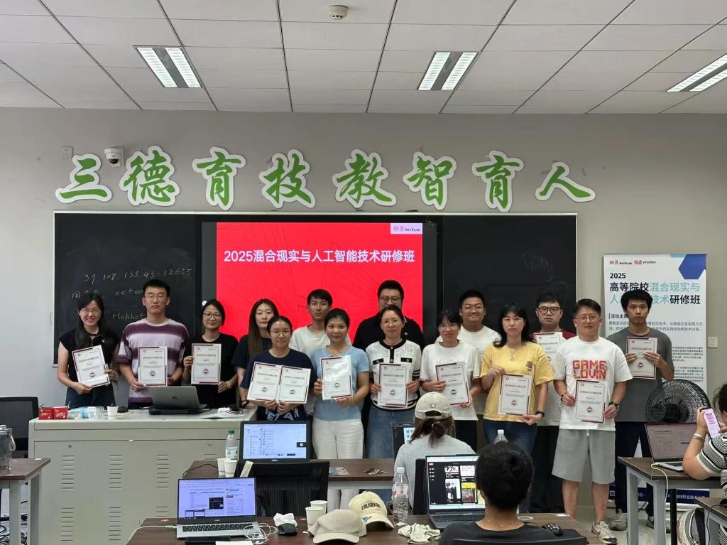 2025年8月11日至16日,由北京网易有道计算机系统有限公司、广州工程技术职业公司、呼和浩特职业公司联合主办的2025年高等院校混合现实与人工智能技术研修班(第一期) 在呼和浩特职业公司培训中心成功举办。伟德国际victor1946院选派骨干教师参加本次研修,与来自全国多所高校的教师共同深入探讨混合现实(MR)与人工智能(AI)技术在教学与产业中的应用与发展。