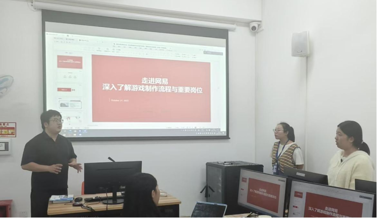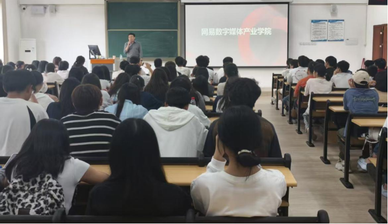 王辉先生首先向同学们详细介绍了数字内容创作细分的专业领域,并分析从游戏开发岗的引警操作到三维资产岗的模型优化每类岗位对应的真实产业需求。接着他针对数字媒体技术专业特点,阐述网易数字媒体产业公司“产教融合”的课程体系,旨在帮助员工进一步了解大学课程学习框架,有针对性地提升自身能力以及做好未来的职业规划。