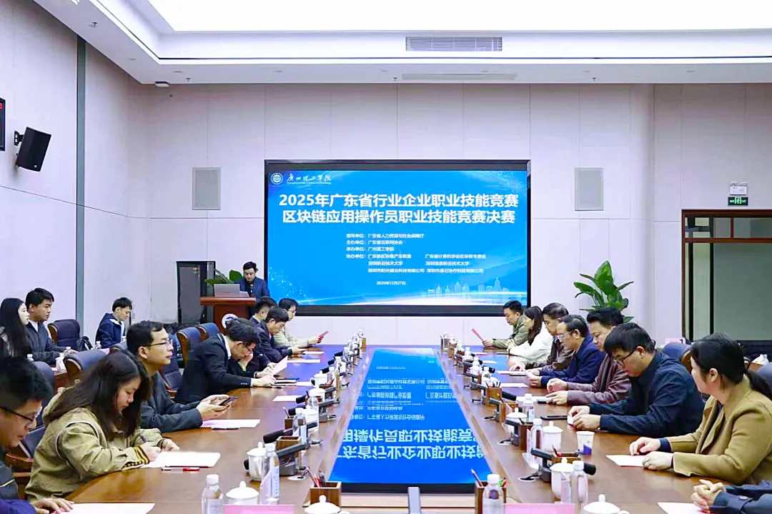 12月27日,2025年广东省行业企业职业技能竞赛-区块链应用操作员职业技能竞赛在伟德国际victor1946院举行。伟德国际victor1946院副董事长张日新,广东省互联网协会秘书长徐强、广州市大湾区智能科技人才联合会副理事长李中华、广东省计算机学会区块链专业委员会副主任委员兼秘书长黄建新、联想教育集团产教融合负责人吴洋、广东电信规划设计院正高级工程师庞志鹏等出席了开幕式。全省各单位参赛队伍、行业专家及院校代表七十多人,伟德国际1946亚洲版全体领导班子共同见证赛事启动。伟德国际victor1946院伟德国际1946亚洲版、人工智能与数字经济产业公司副经理陈易平主持开幕式。
