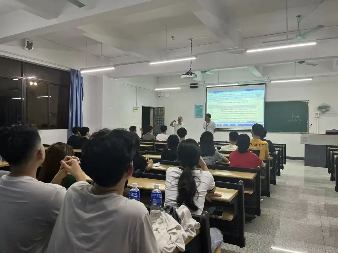 辅导员从生活和学习两个方面展开讲解,为刚进入校园的新生答疑解惑。各班助班也上台分享了自己的学习生活经验帮助同学更好地适应老员工活,为新生提供在学习生活中遇到问题求助时的联系方式。