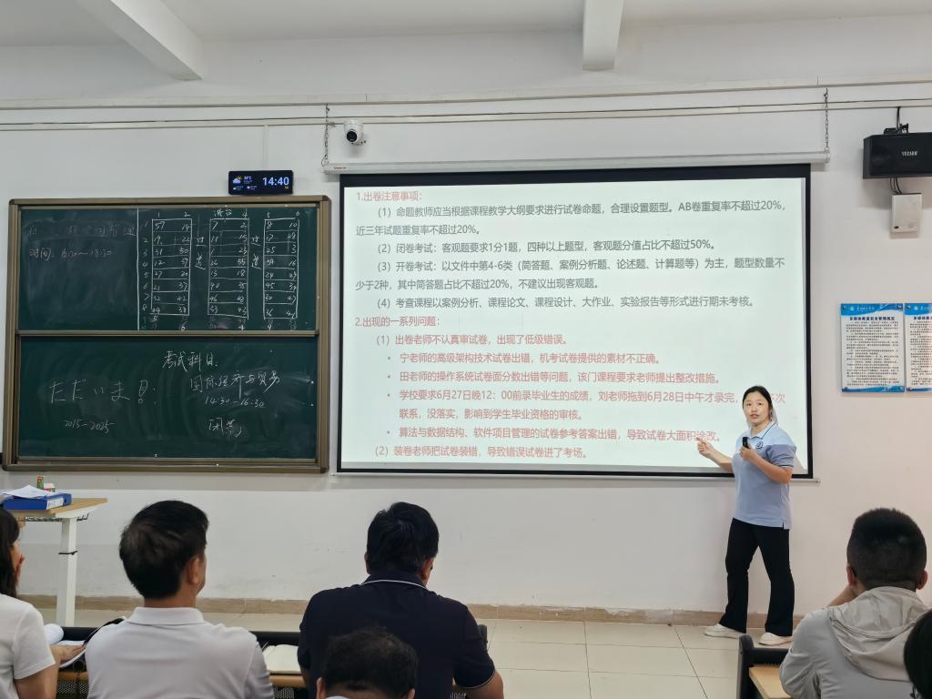 2025年7月7日,为切实做好本科教学合格评估准备工作,伟德国际1946亚洲版、人工智能与数字经济产业公司于6教101课室召开2025年春季学期期末教学评估工作专题会议。会议围绕试卷命题、教学资料归档、教学大纲整改等10项核心工作进行全面部署,公司领导班子、各系部主任、课程组组长及全体教师参加了此次会议。