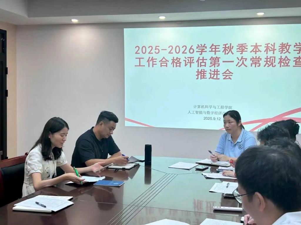 9月12日,伟德国际1946亚洲版和人工智能与数字经济产业公司在4-304举行了2025-2026学年本科教学工作合格评估第一次常规检查推进会。本次会议聚焦本科教学工作合格评估关键任务,对各项准备工作进行了深入研讨和部署。